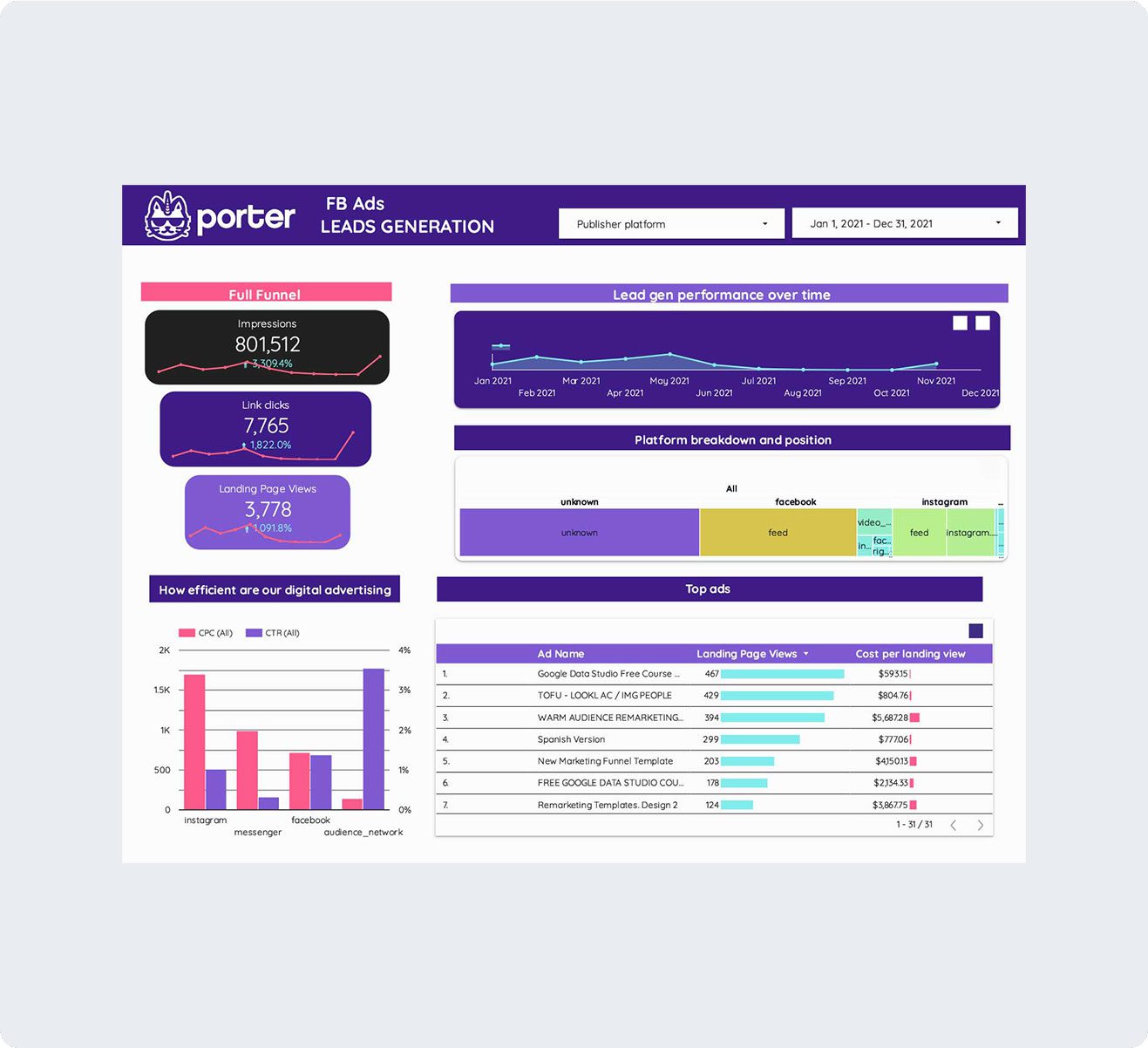 Get your reporting done in seconds with our ever-growing gallery of Data Studio report templates inspired by our clients from all around the world.